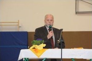 Der Vorsitzender Dr. Michael Hüttenberger eröffnete die Veranstaltung und ließ die Entstehung der Sporthalle noch einem einmal in Erinnerung rufen. Im Hintergrund wurden parallel dazu Bilder vom ersten Spatenstich bis zur Fertigstellung gezeigt.